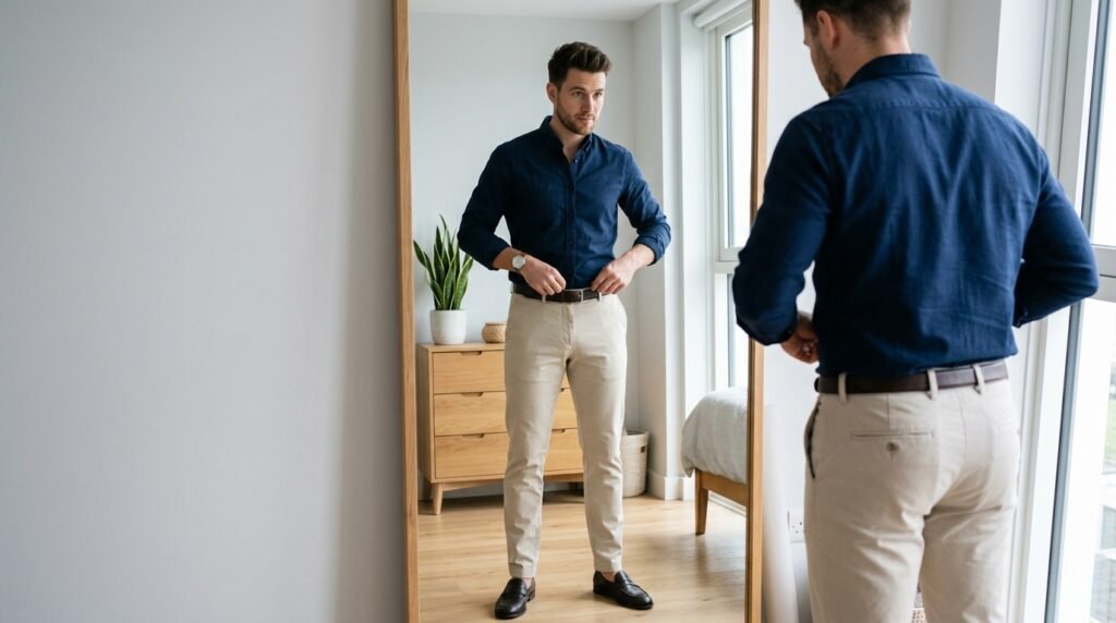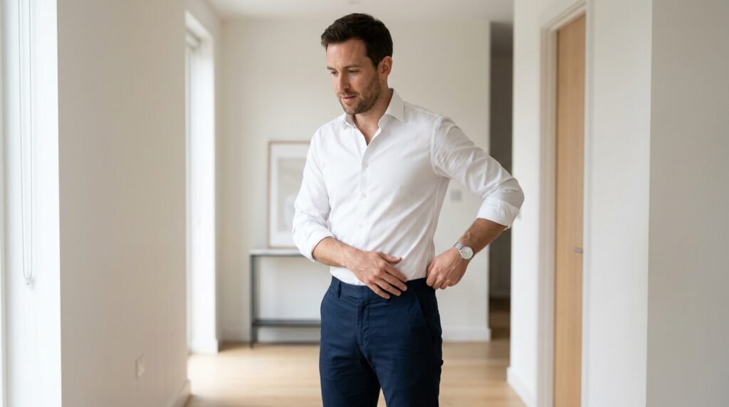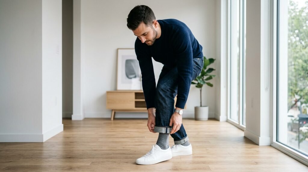 Rolling up your jeans or chinos just above the ankle bone adds instant structure and makes your whole outfit look completely intentional. It is a super easy trick that highlights your kicks but just make sure you avoid those messy bulky rolls that bunch up looking like heavy donuts around your ankles.