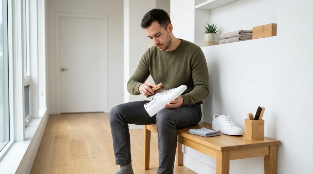 Scuffed and dirty shoes make you look lazy whether you are rocking casual everyday sneakers or trying to match formal footwear with a light grey suit. Taking a quick minute to brush them off and keep them pristine signals to everyone that you pay attention to the details.