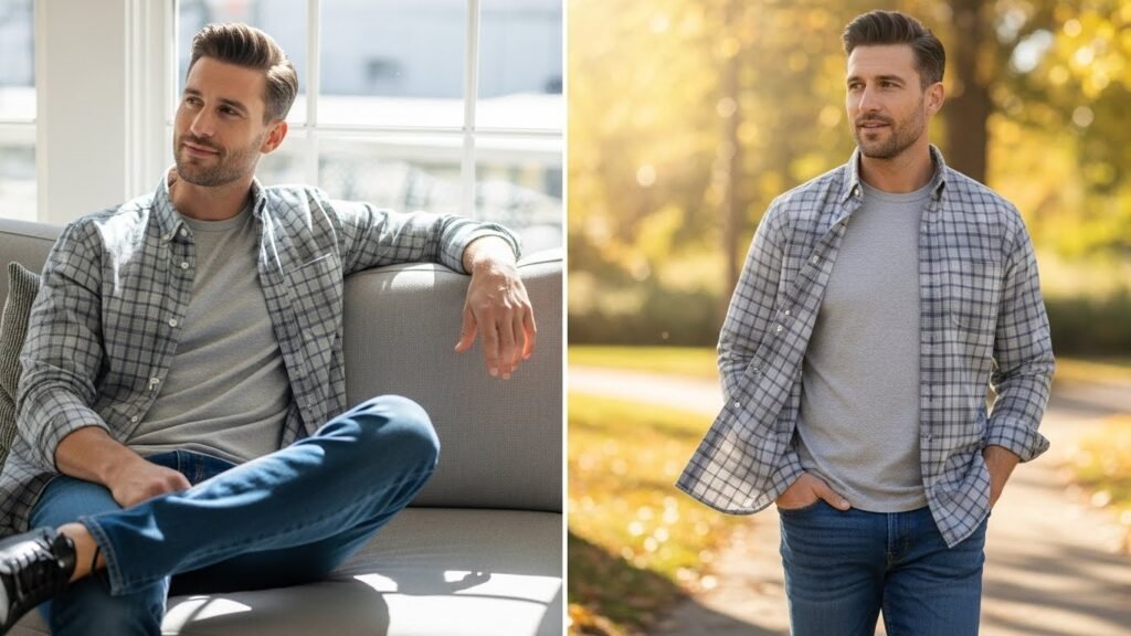This figure concentrates on comfort and layering possibilities, and is a contemporary version of the traditional design of flannel. It has a larger cut that contributes to aesthetic appeal as well as the ability to move freely and create a sense of warmth in the room.