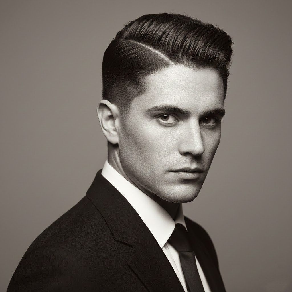 It can also look theatrical, that razor-sharp deep side part. When it is too extreme, it starts to look contrived and out of date, not capturing that modern, age-appropriate style.