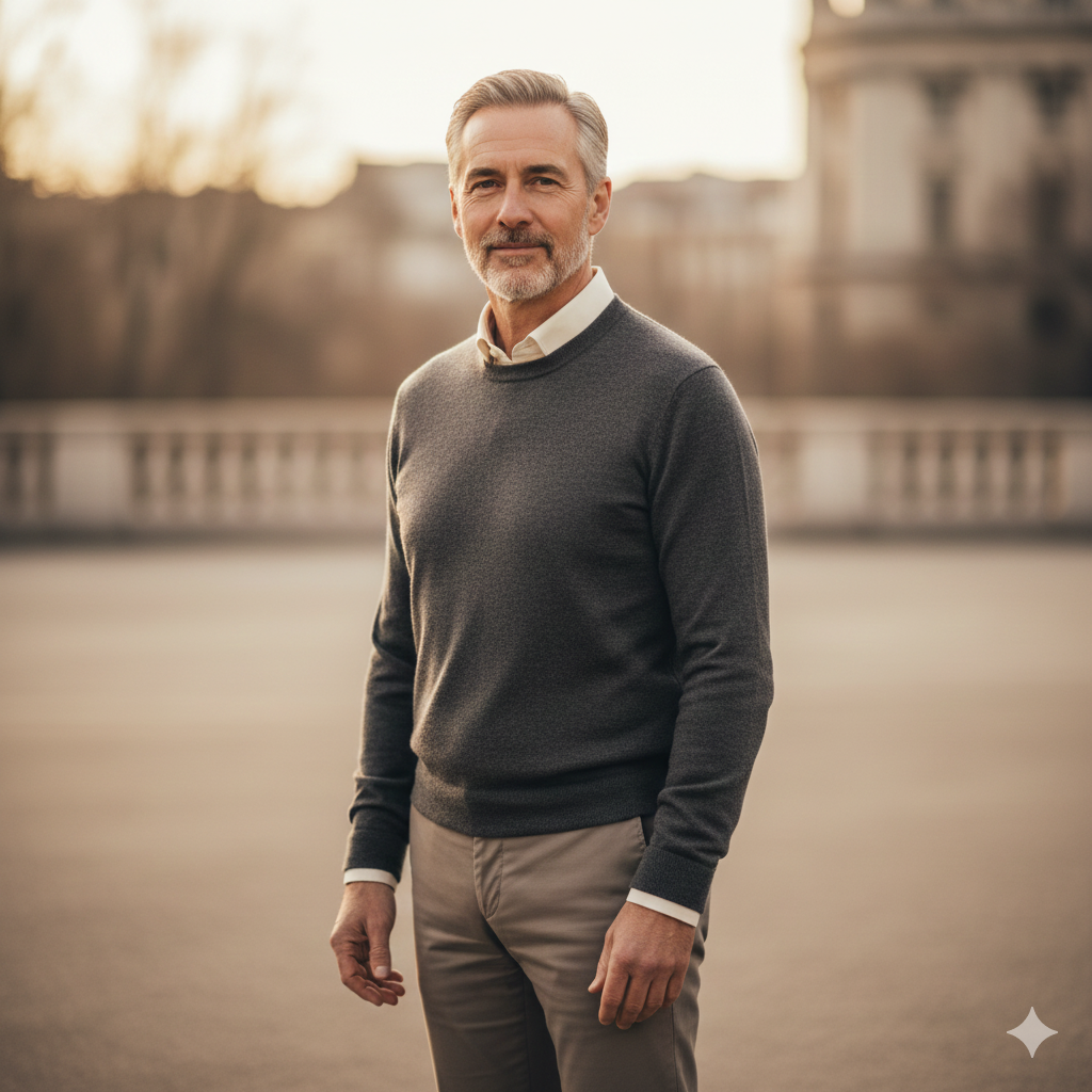 Such confidence is solid as it is the result of years of experience, problem-solution, and cognizing what is really important. It portrays a feeling of still self-confidence instead of desire to be noticed making the impression of someone strong and trustworthy.