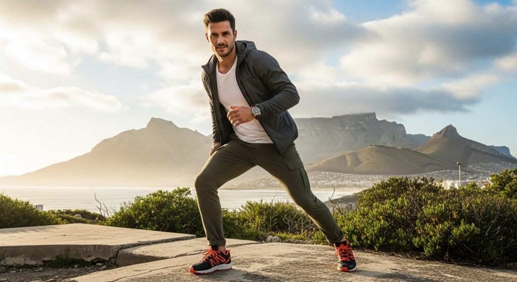 Cape Town needs multi-purpose dresses that are action-oriented and have a definite sharp contrast. A technical jacket that fits snugly, slim olive or slate cargo pants, and high-quality trail sneakers are all one needs to cope with all that the city provides. Wear a clean-fitting tee and top it with a nice leather strap watch. Cape Town rewards the man who dresses, not merely because it functions so, but because that is his actual purpose.