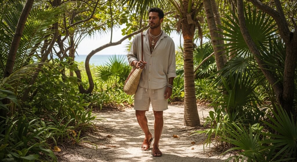 Tulum has a visual language with its own set of words, and your wardrobe must speak the language. Sand or warm white linen sets, clean leather huarache sandals, and a tote bag of woven material are perfect. Wear jewelry to be arduous with a simple chain, a clean bracelet tier, and so on, which may also reflect the unpretentious coolness associated with this destination.