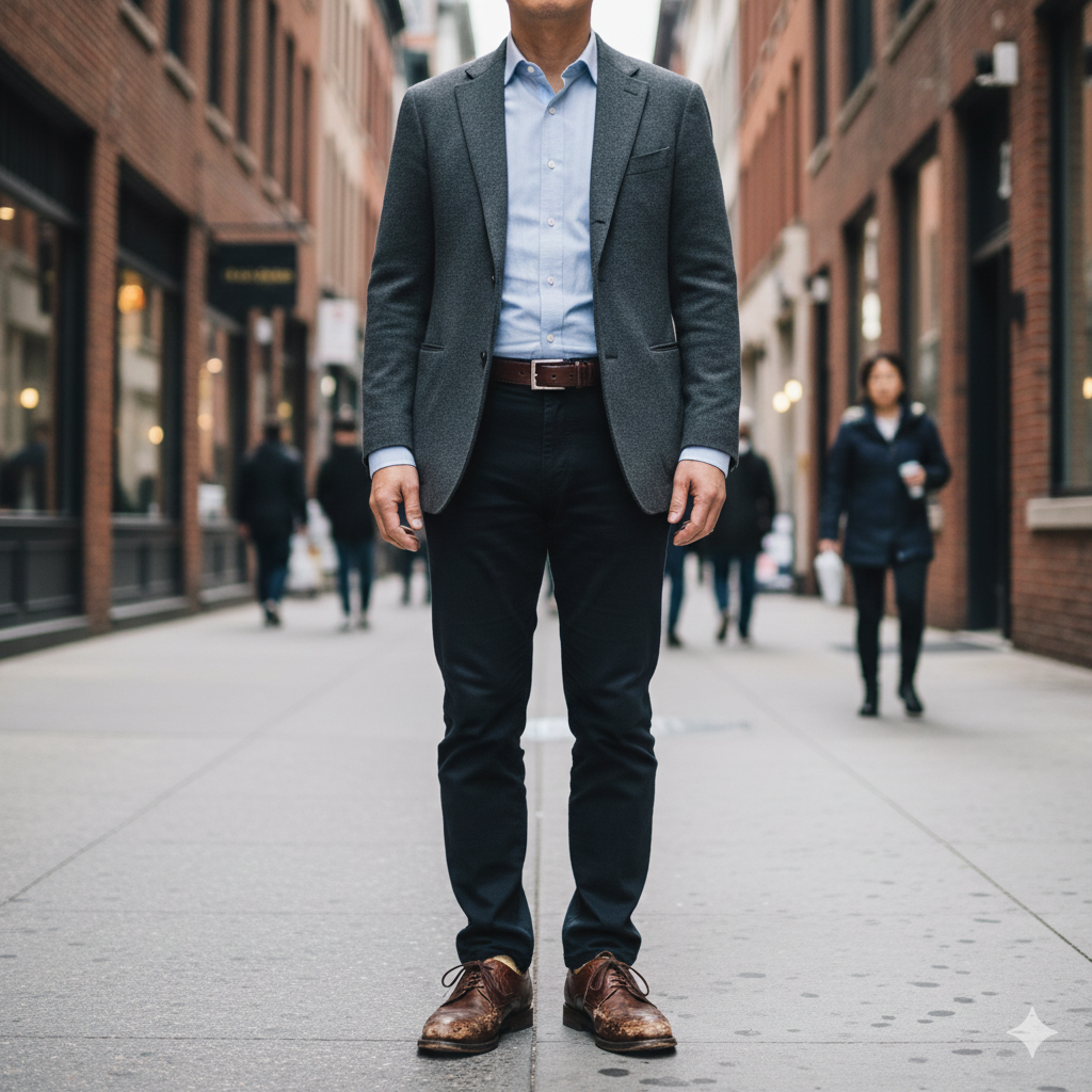Wearing a jacket that is either too boxy and huge or one that is way too tight across the middle instantly makes you look sloppy not professional. Proper tailoring is the most important thing because it makes any jacket look expensive and sharp.