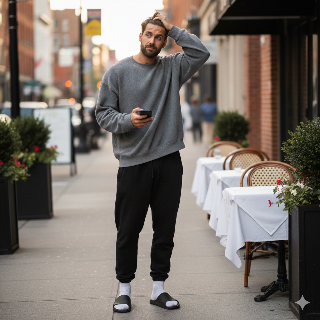Workout clothes are fantastic for the gym or lounging around your house but wearing them out to a restaurant or a casual date is just lazy. It shows a lack of effort that everyone notices so change into real clothes before leaving home.