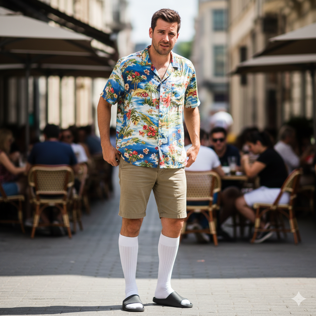 Many people consider this the biggest style error of all time. It is hated for some reason. If you wear open shoes like sandals, just forget the socks completely. This look simply does not work well.