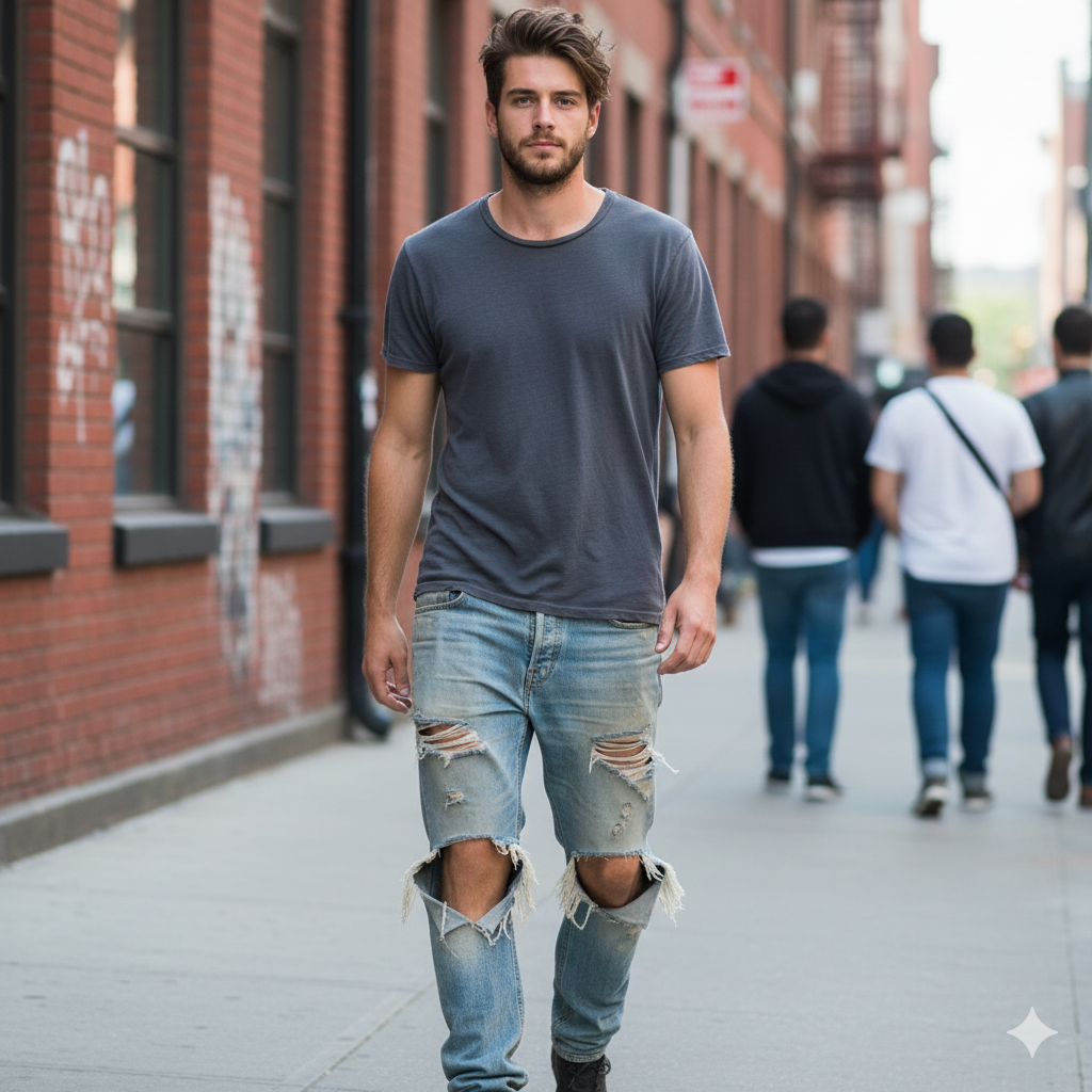 A few small rips are fine, but jeans with huge holes look messy and lazy. It seems like they are falling apart! Keep the rips small and tasteful. This makes your whole look much more intentional and sharp.