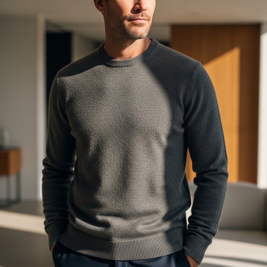 A well-fitting cashmere sweater is cozy but not heavy and classy yet not a show off. The minimalistic silhouette and its soft fibers provide a smooth look that is applicable in office meetings until relaxed weekends.