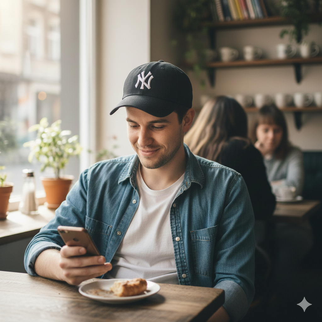 Backward cap as a default look screams eternal frat boy. Indoors all the time? Rude and dated. A well-fitted cap forward for sun, or skip it when you’re inside – simple respect.