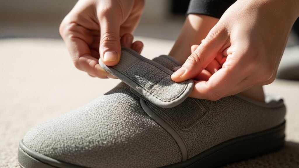 Adjustable straps help customize fit. This helps people with wider feet or swelling. A better fit improves comfort and keeps the slipper from feeling loose or tight.