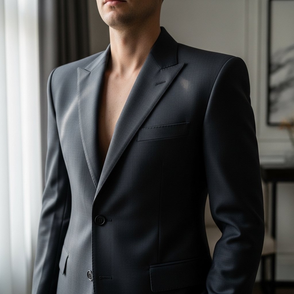 Natural directing of the eye up and down is the subtle vertical lines, creases in the middle of trousers, and long lapels. These factors extend the figure and make it look sophisticated and self-assured.
