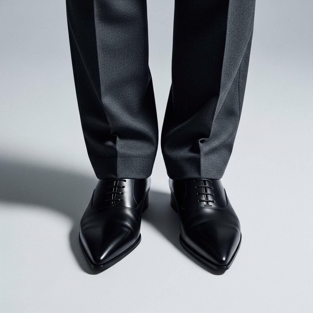 Shoes with a small point make the foot longer and add to its total length. Darker colors of sleek leather also bring brightness but without making noise about boosting the stature.