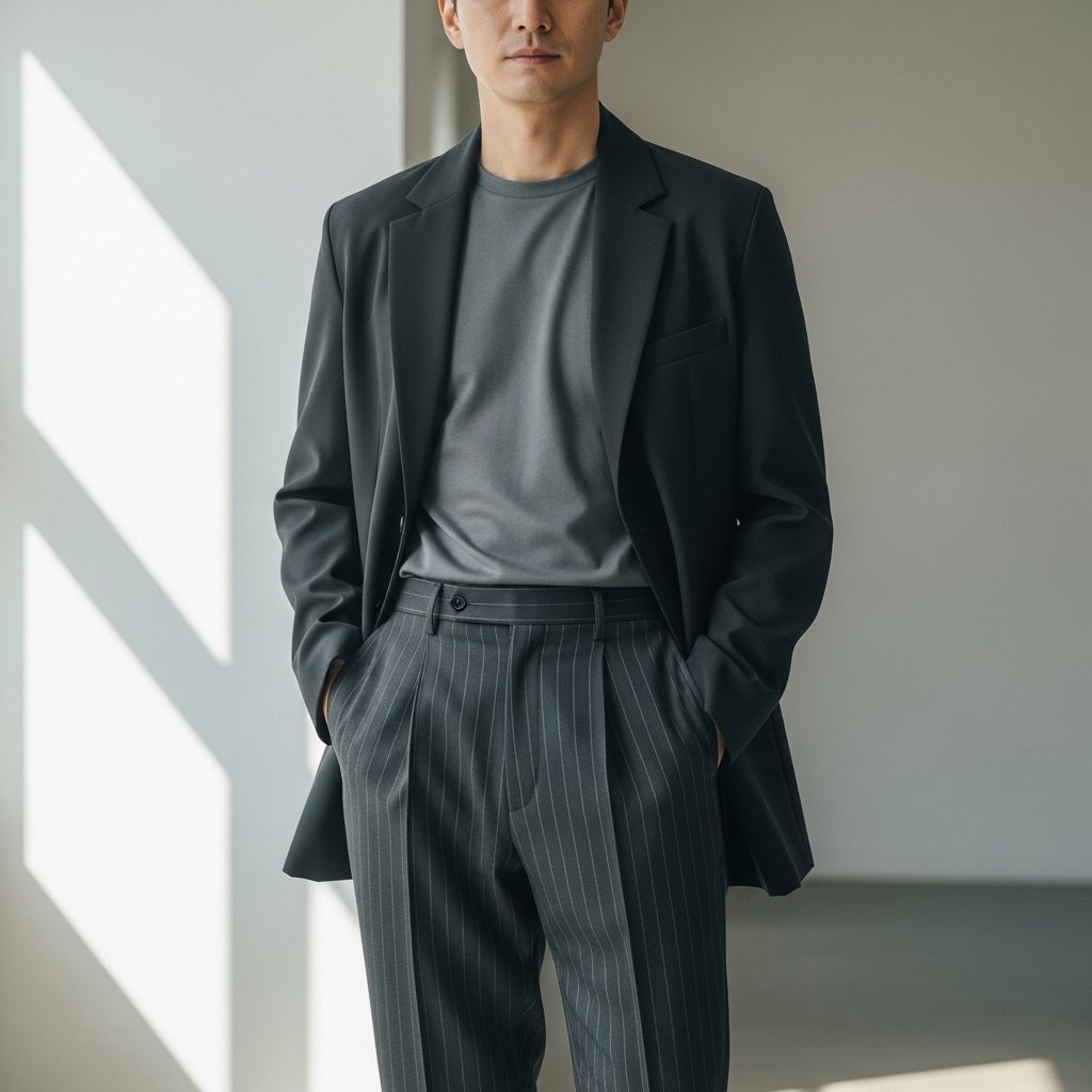 Clothing that is close to the body though is not clinging is not bulky, also it is not a bunch of fabric that will shorten the frame. Adjusting the pants and sleeves to the right length will make the lines clean to give an impression of accuracy and restraint.
