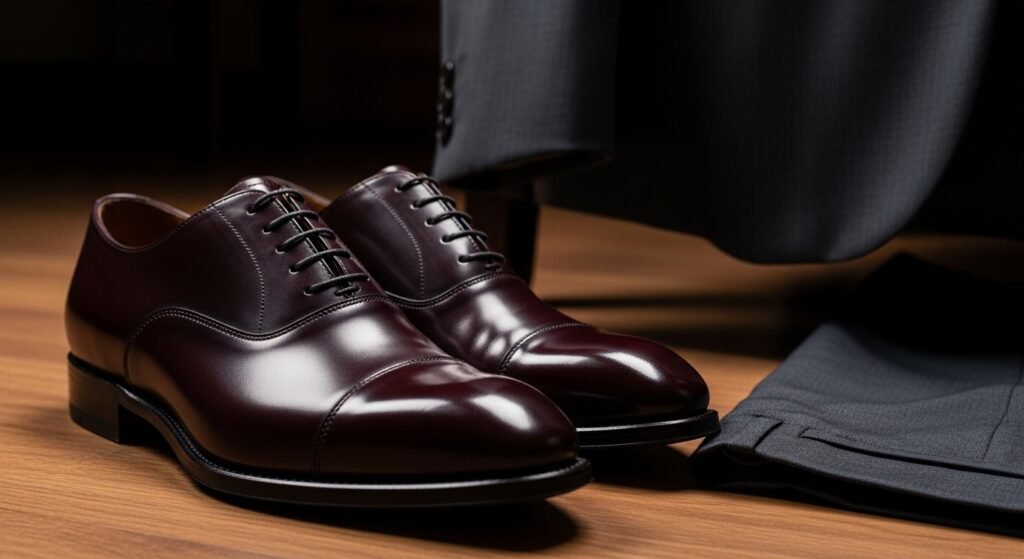 Each man had to have one outstanding pair of dress oxfords in natural leather with an unadulterated vintage shape. By 2026, it will be more of sleek lasts in dark cognac, dark burgundy, or classic black. They are the shoes that appear during job interviews, weddings, formal dinners, and any time it is important that one appears presentable; then the matters at hand are not open for negotiation.