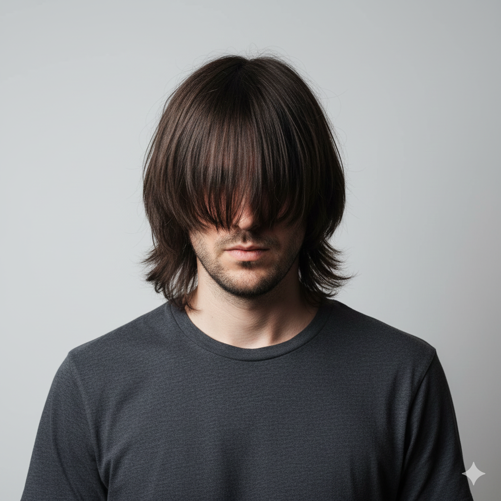 The Ultra Long Fringe Falling over the Eyes