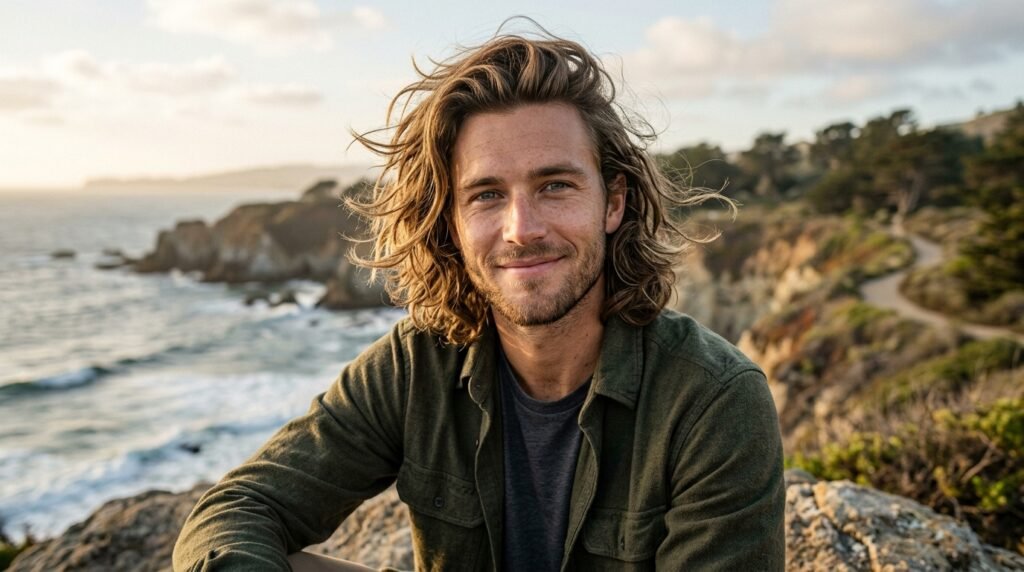 The “Bro Flow” style features hidden hair behind the ears for men with medium length and long hair. The style shows a relaxed personality which prefers outdoor activities, according to barbers who state that partners select it because of its gentle appearance.
