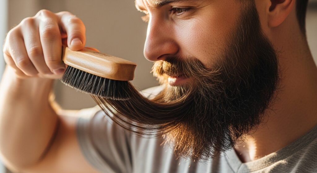 Brushing is a method of one longing to have their beard hair grow in a set and moderate direction. It also spreads the oil of nature evenly, decreases the tangles, and enhances the general texture and beauty. Even a few minutes each day will enhance fullness in appearance, and a patchy area will appear to flow into the thicker areas.