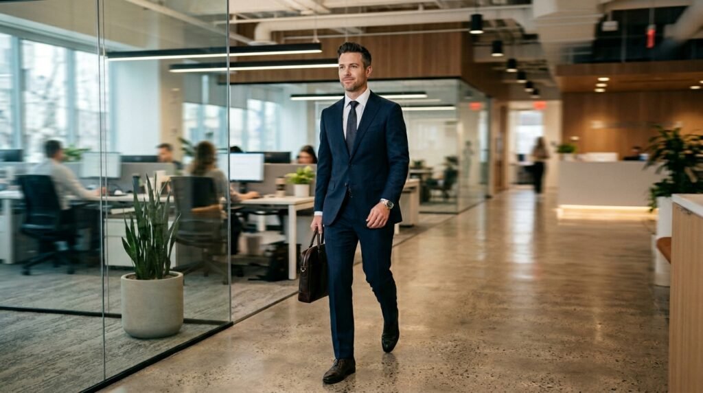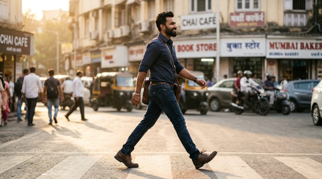 The appearance of six to eight inch longer stride than the normal generates actual sense of power even before you reach there. Walk as though you are confident in the direction you are heading at a point of knowing it well even as you are only making some figures of it out.