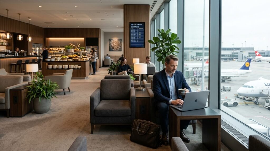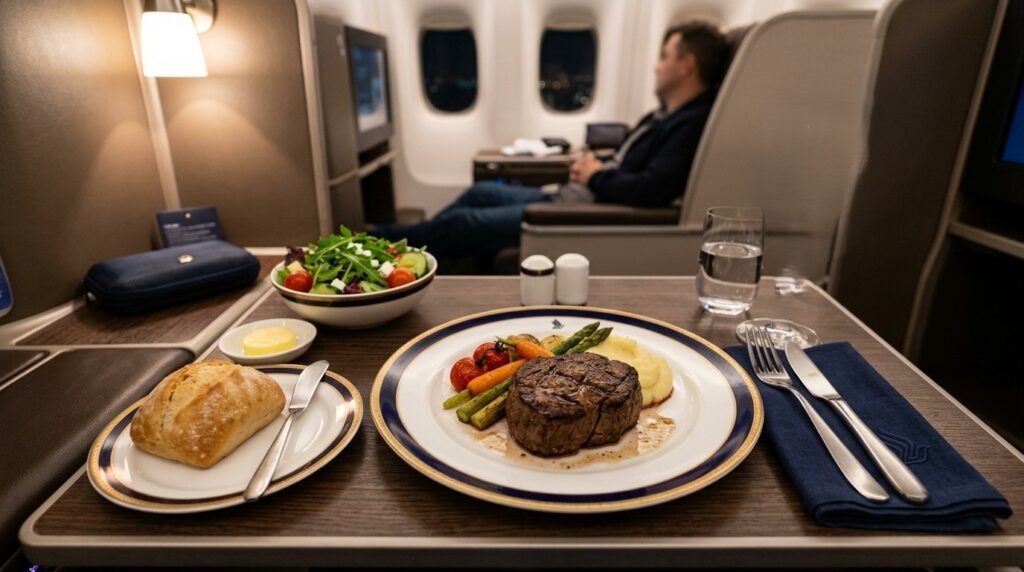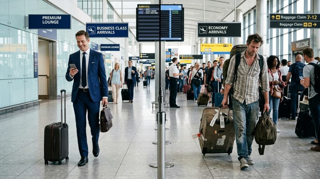 It is in the airport lounge that business class is paying off before you even get on board. There is a distinct difference made between the experience due to quiet seating, quality food, shower facilities, and zero chaos. Coming to the gate, a relaxed person and not a harried and packed mass attracts the premium in its own right.