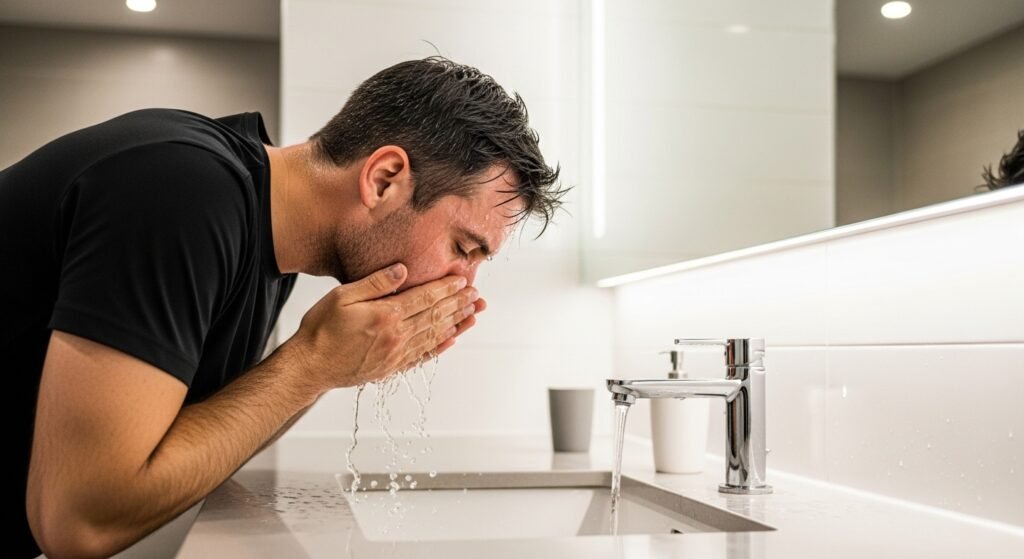Intensive exercise can lead to sweat, skin congestion, scalp oiliness, and redness. Washing your face post-training is essential, and using a non-comedogenic light moisturizer will help maintain clear skin and a presentable appearance during a serious transformation program.