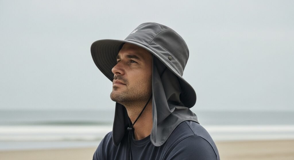 Sunlight bounces harder near water and light-scattering sand, sending more UVs straight onto skin. That is why covering your head matters so much out there. When you wear the right hat along with protective gear, protection grows without needing extra steps.