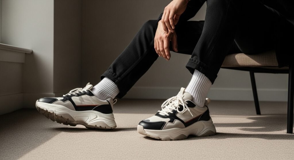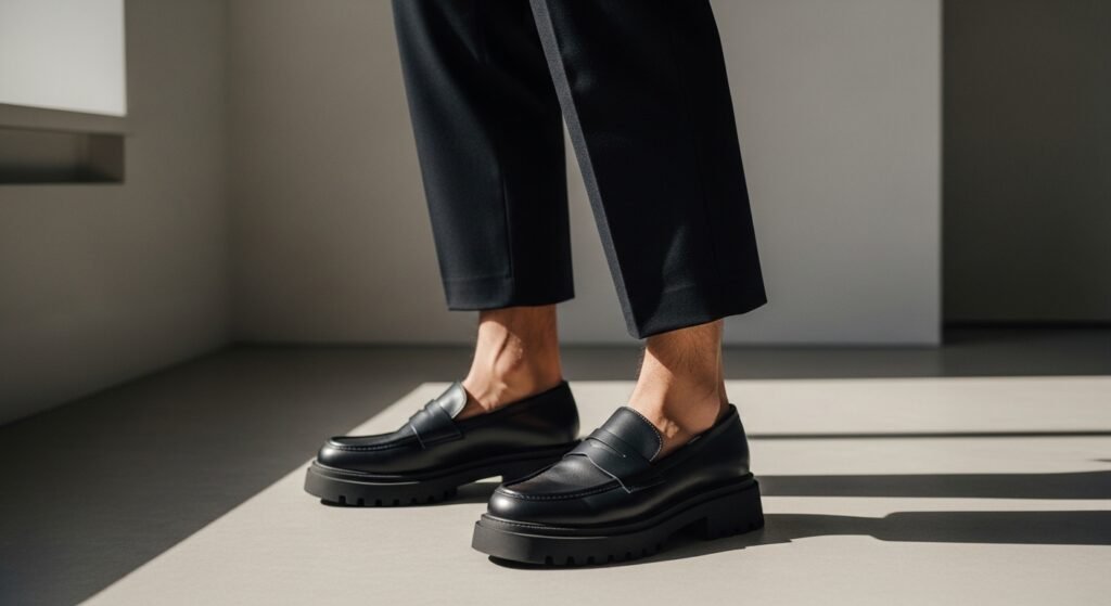 In comparison, slim dress shoes are out of date. Relaxed tailoring was now made with chunky loafers with heavy soles. They put on weight, balance, and a gentle attitude on cropped or wide trousers. In 2026, analysis is more important than custom.