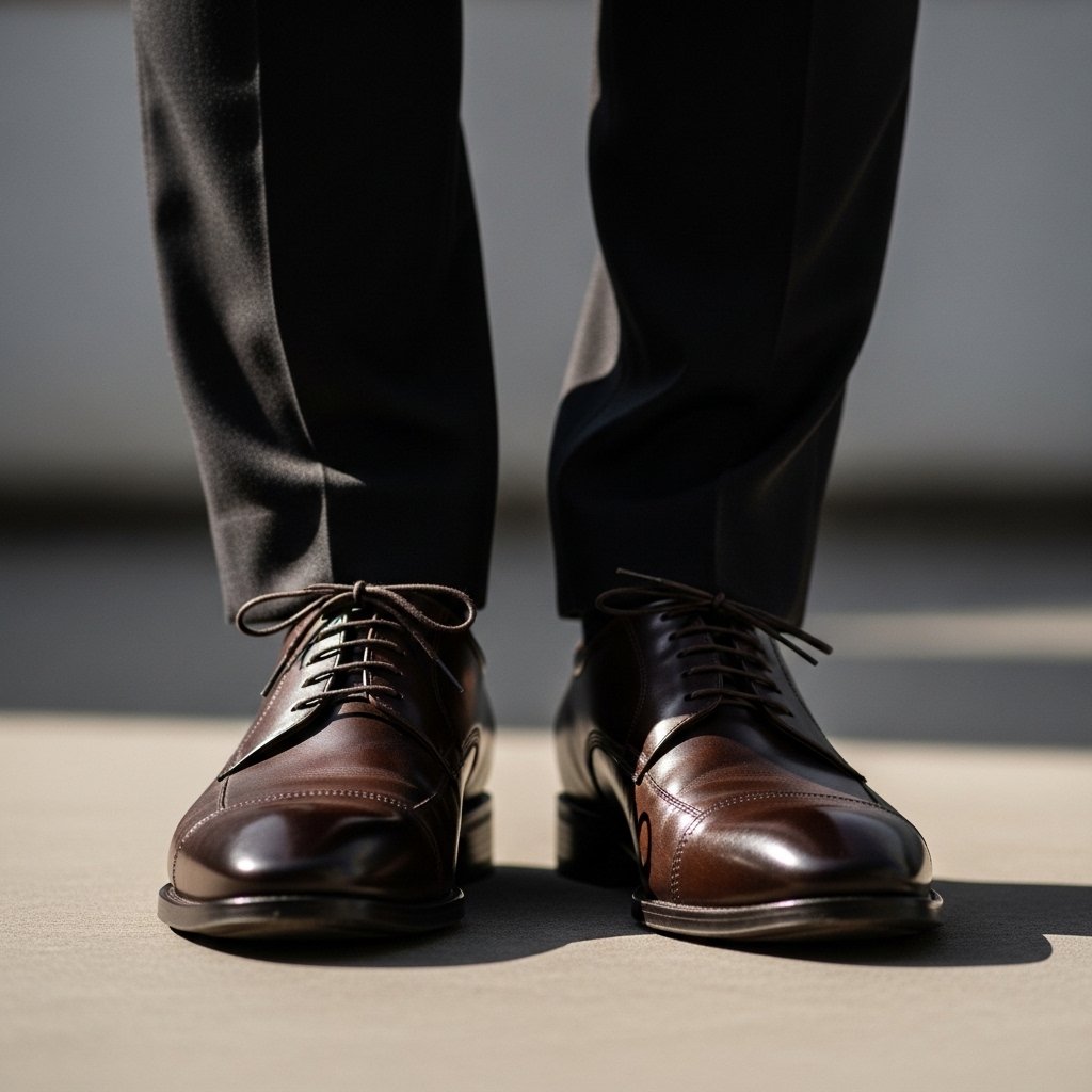 Shoes are attention seekers whether wanted or not, and men confirm that clean, well selected footwear is an attraction to even the lowest form of clothes. As soon as shoes correspond to the formality and colors of the clothes, the whole appearance turns purposeful, which is an indication that care has been taken without the necessity to make an impressive statement.