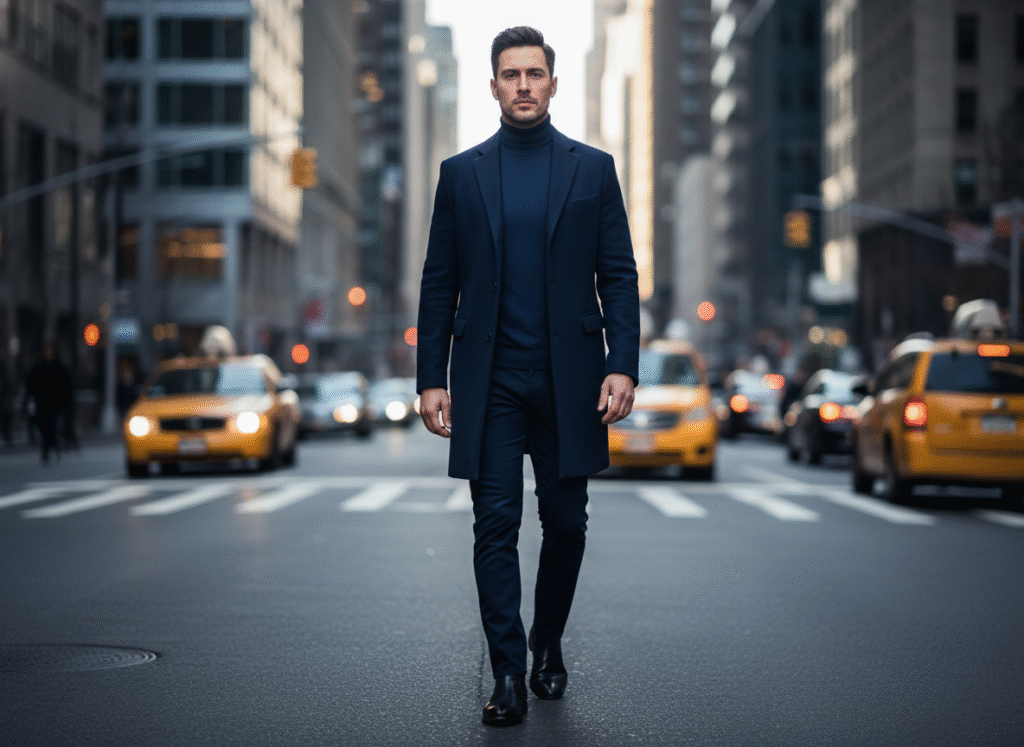 The whole appearance is held by a structured coat. Proportions are enhanced by long wool coats or custom-made jackets. The right fit ensures that the outfit is not made to look too fat. The impression is often determined by the coat.