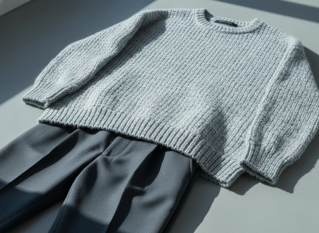 Grey provides a more easy-going bottom with a sharp appearance. It is made to be deep with colours, such as light grey knits paired with darker trousers. It gives the outfit a loose but up-to-date look. It is suitable for combining simple winter clothes.