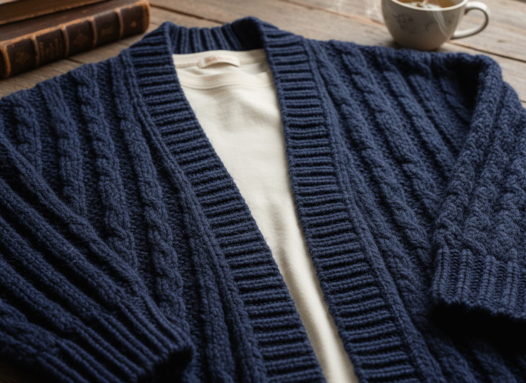 Warm clothing is provided by cardigans and sweaters. The natural handknits can be incorporated into any monochrome costumes. They carry organised clothing such as coats or trousers. Here, comfort and style go hand in hand.