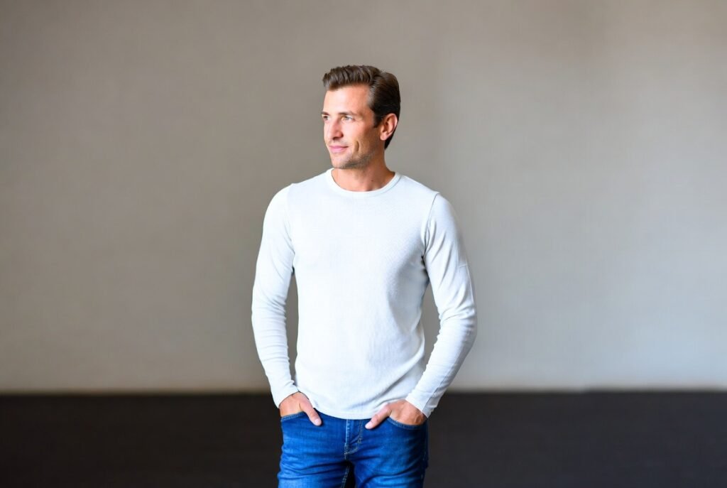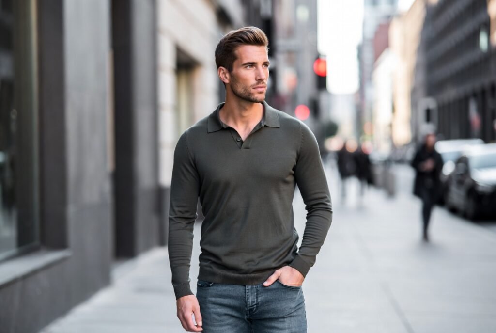 Jeans are more suitable when worn with structure. A knit polo, fitted shirt, or light jacket is a contrast. Avoid overly baggy tops. Form calms down the casualness of denim.