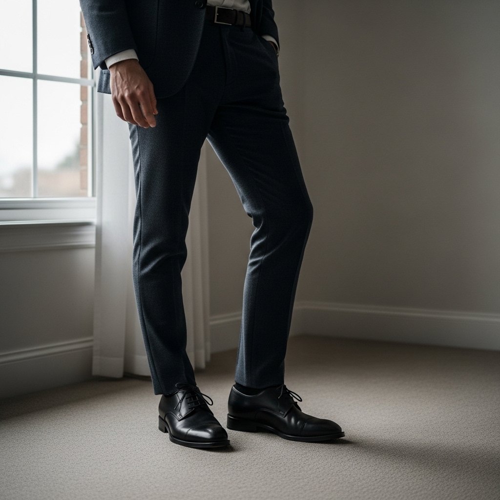 Derby shoes provide a slightly more relaxed alternative to Oxfords while still maintaining a sharp appearance. The open lacing design gives them a touch of flexibility and comfort, making them suitable for long office hours, and they complement both slim-fit suits and smart chinos without appearing overly formal.