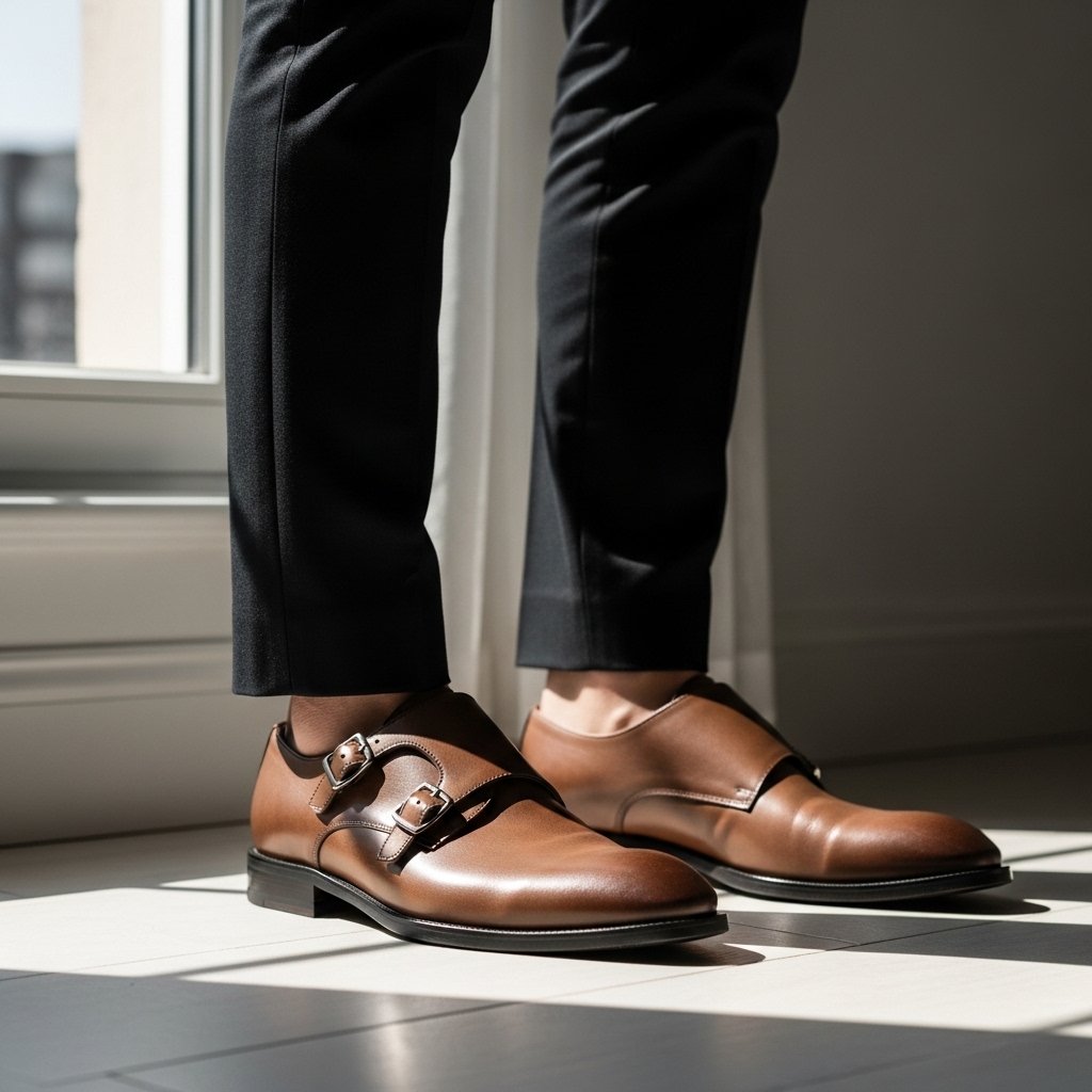 Monk strap shoes stand out because of their distinctive buckle closure, which replaces traditional laces. This design creates a sleek and contemporary profile that suits professionals who want something slightly different while remaining office-appropriate, and they look especially sharp with fitted trousers and crisp shirts.