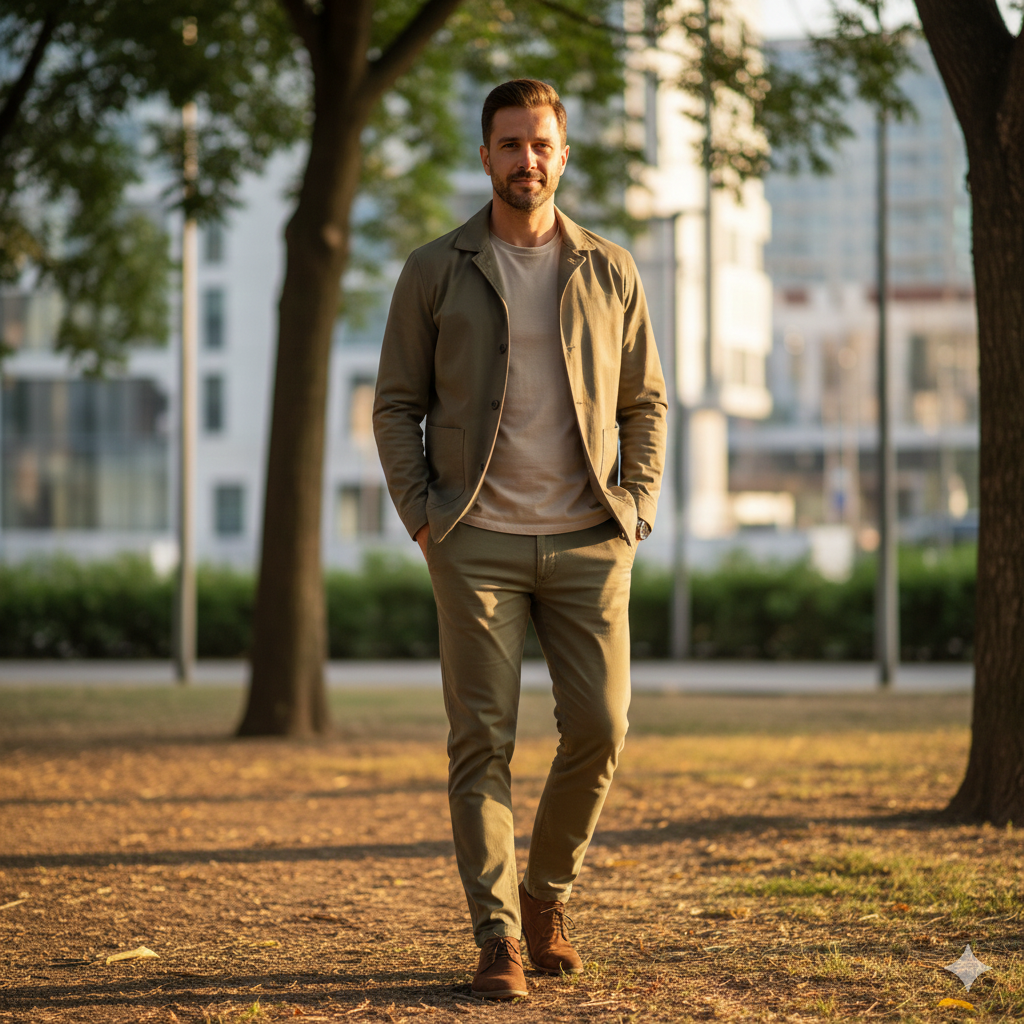 Olive green is a fantastic earth tone neutral that adds a little depth and character to your casual look and it works great on most guys. Try an olive green jacket or chinos instead of your usual black or khaki pants for an easy update.