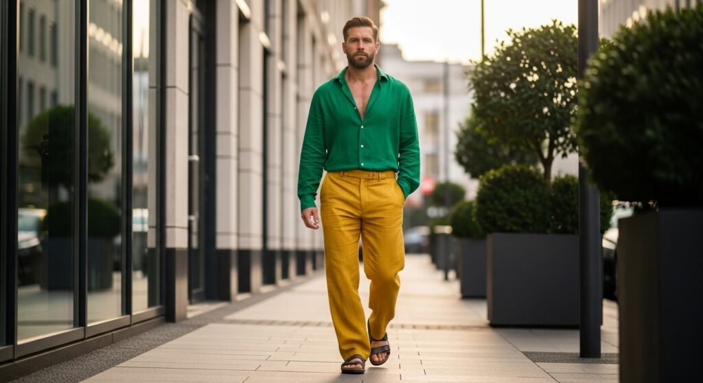 Men in the US are also balancing light and dark colors to make images visually acute. A white shirt on a dark pair of jeans looks crisp as a result of linen fabric, or a tan jacket on a pair of navy chinos conveys an impression of finer attention to detail. Such a considerate color sense there indicates the style sophistication without leaving one to possess a costly or complex wardrobe.