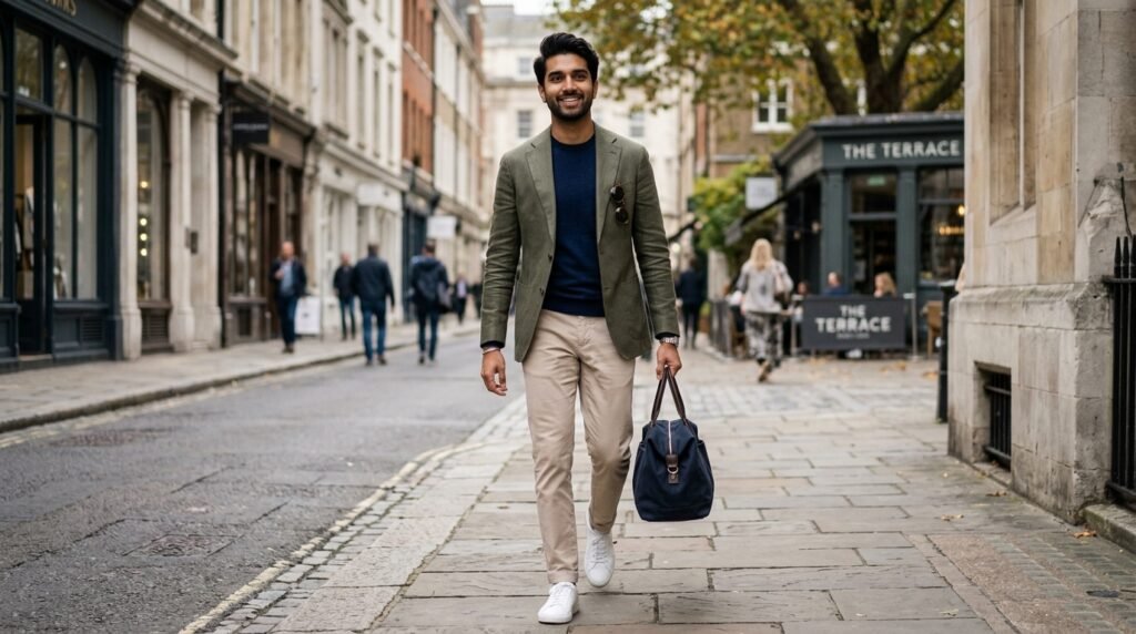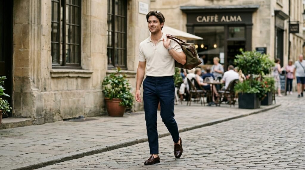 You do not need to wear a stiff suit to look sharp anymore because well tailored casual clothes do the trick perfectly. Swapping out a graphic tee for a nice cream polo shirt and fitted trousers instantly upgrades your daily outfit without feeling overdressed.