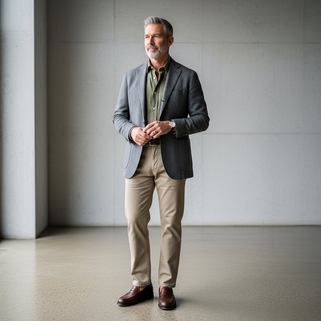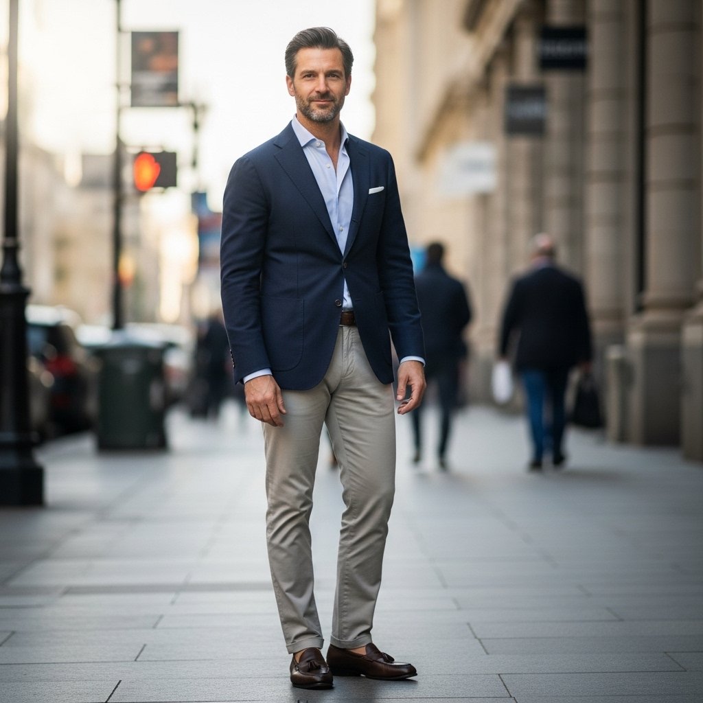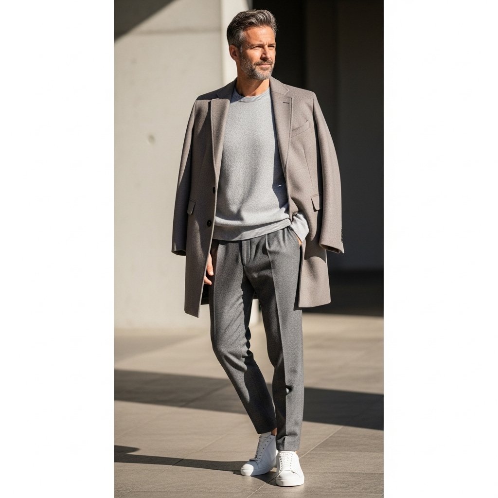 Footwear functions as the foundation for every outfit. Simple, well-maintained shoes elevate even casual looks. The combination of clean sneakers with loafers and leather boots delivers the ideal mix of casual and formal appearance.