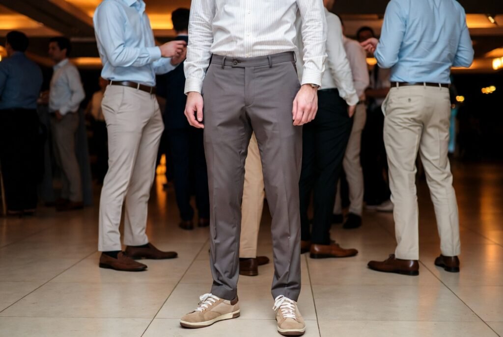 Wearing sneakers with formal clothes