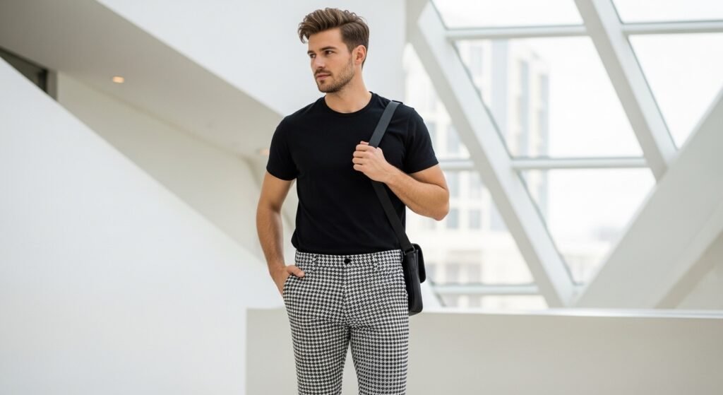 A lot of men are attached to simple trousers, and the simple style of trousers is not easily upgraded. Houndstooth, plaid, or textured trousers do the trick with ease. Match them with a plain top and make them seem deliberate and imaginative. Who would have thought that trousers would do so much, although you just look good?