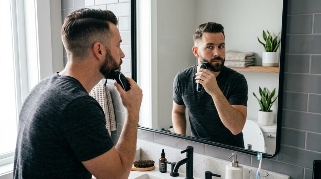 An unkempt beard and messy hair will destroy the impact of your exceptional clothing and regular trims and a clean neckline are essential. Your grooming style serves as the finishing touch which completes your clothing selection.