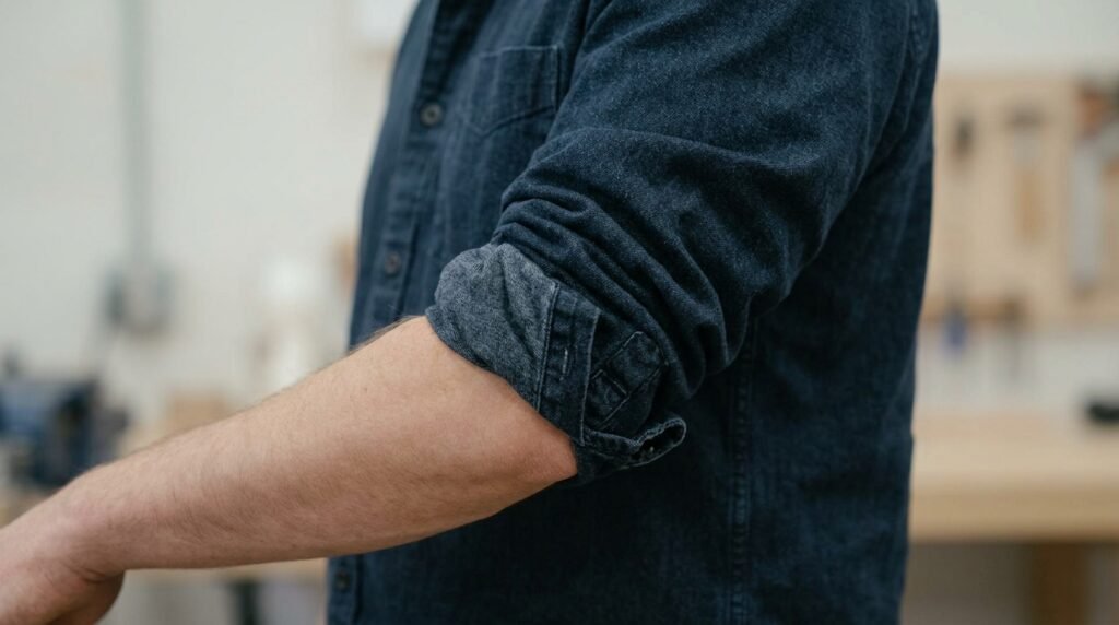 The “Master Roll” creates a neat elbow appearance compared to using messy bunching and fold the sleeve up to just below your elbow, then fold the bottom part over the cuff. The design maintains its position while providing a cleaner appearance.