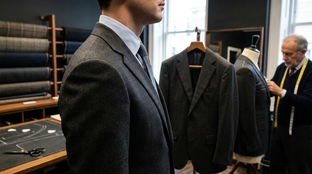 Shirts and jackets must have their seams placed exactly at the point where your shoulder finishes. The garment becomes too large when its hem drops lower and too small when it pulls towards the neck. A perfect shoulder fit defines the fundamental quality that establishes a luxurious appearance.
