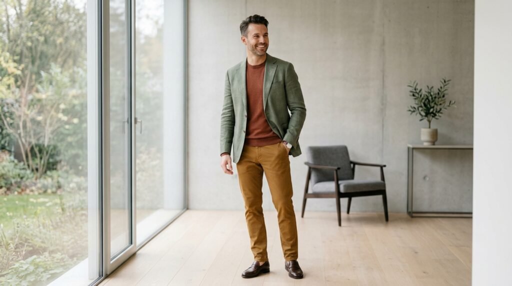 Men can create unique fashion styles by combining multiple textile materials which include heavy corduroy and breathable linen and smooth silk. The outfit gains visual dimension through this element which demonstrates a sophisticated and tactile character.