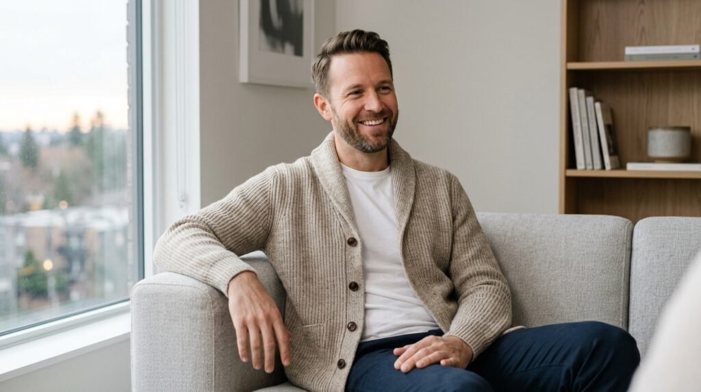 Standard hoodies have been replaced by high-quality knitwear products which include textured cardigans and structured turtlenecks. The design creates a space which produces a warm and approachable appearance which people prefer because it combines comfort with elegance.