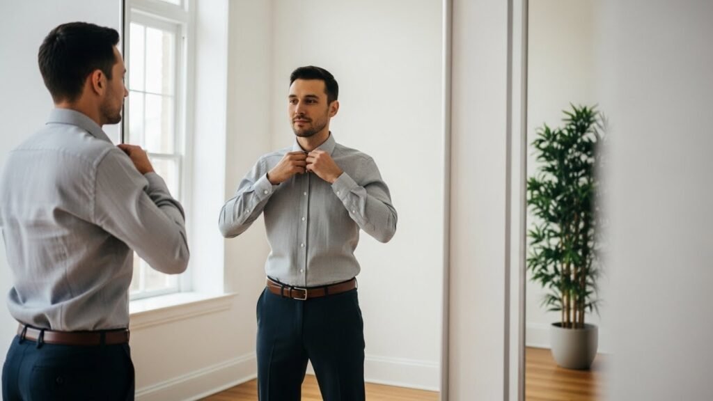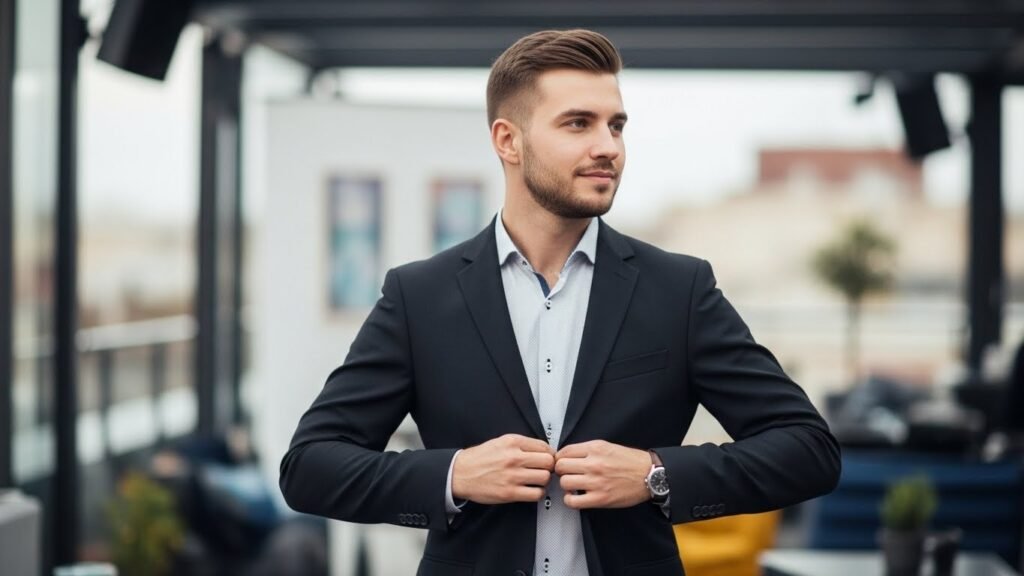 Appropriate attire takes center stage in perception. Attractive males are not about trends but about being fit. Clothes are tailored to the body without any surplus. This provides form and assurance devoid of attention.