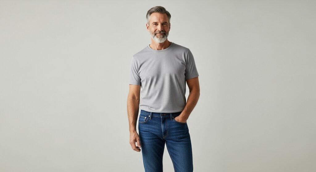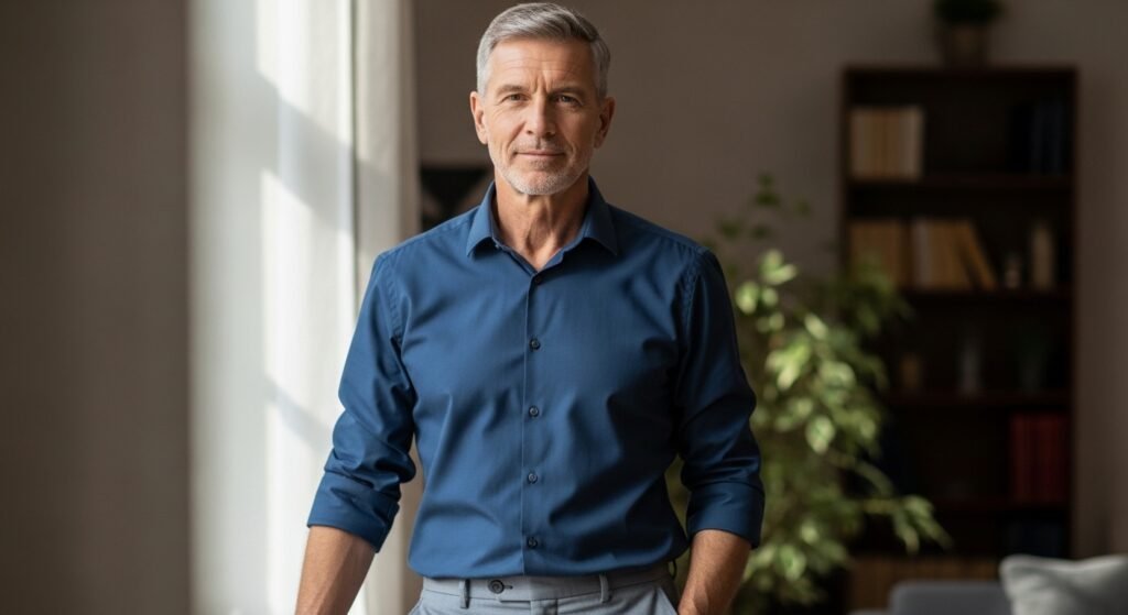 A good deal of men past fifty have brought the wardrobe and grooming decisions down to a bare minimum. They are not interested in trends but rather in fitting, quality and classic pieces. The neat grooming, well cut clothes and clean lines make a refined appearance that is not obtruded.