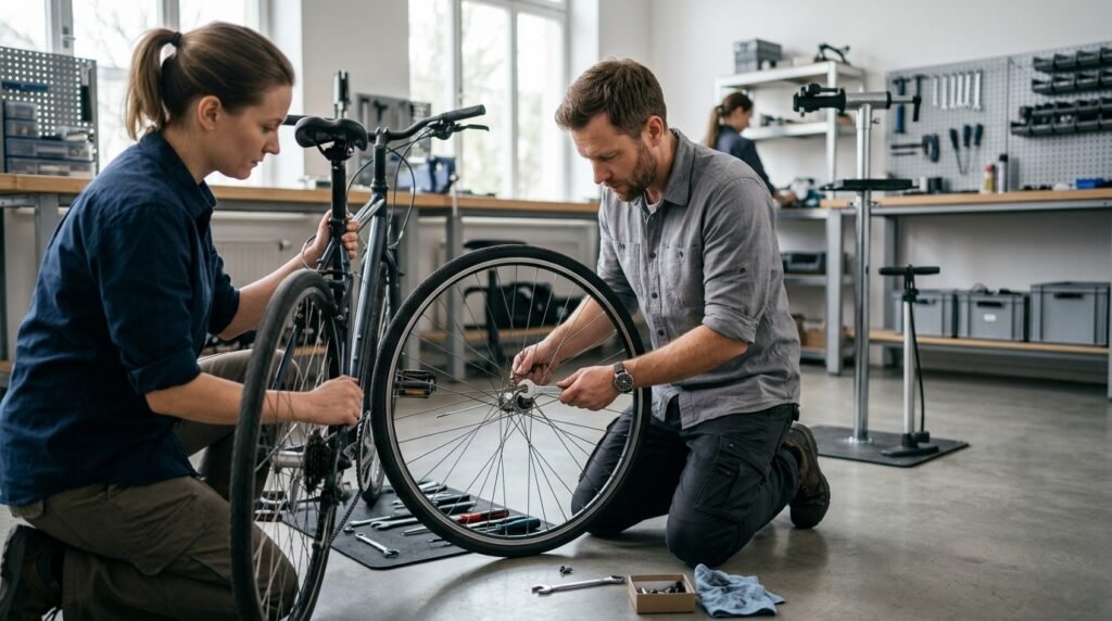 A man who joins a team to assist with tasks such as flat tire repairs and dinner party clean-up demonstrates his teamwork abilities and partners who provide direct assistance through their active participation become known as supportive partners.